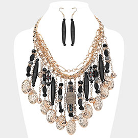 Rectangle Glass Stone Cluster Open Circle Dangle Evening Earrings