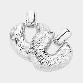 White Gold Dipped Metal Cutout Accent CZ Stone Paved Hoop Earrings
