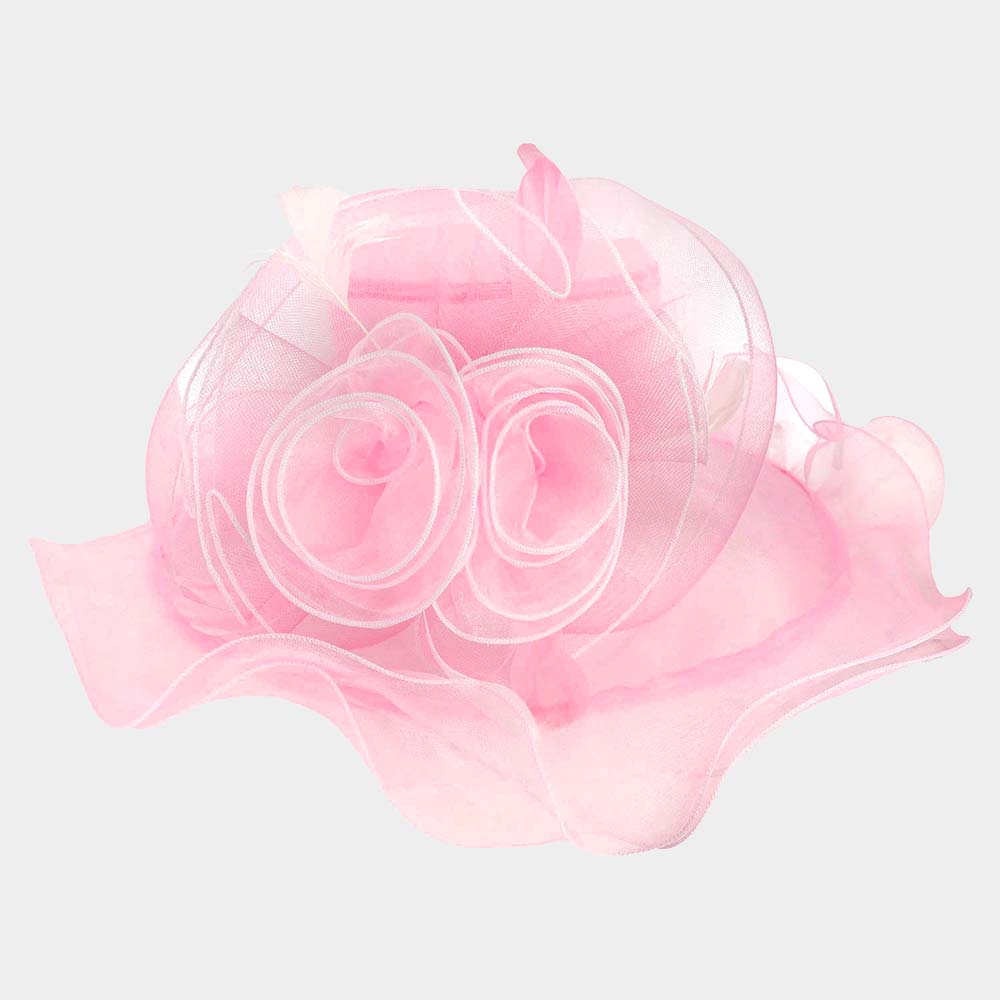 Flower Feather Accented Double Layered Organza Hat
