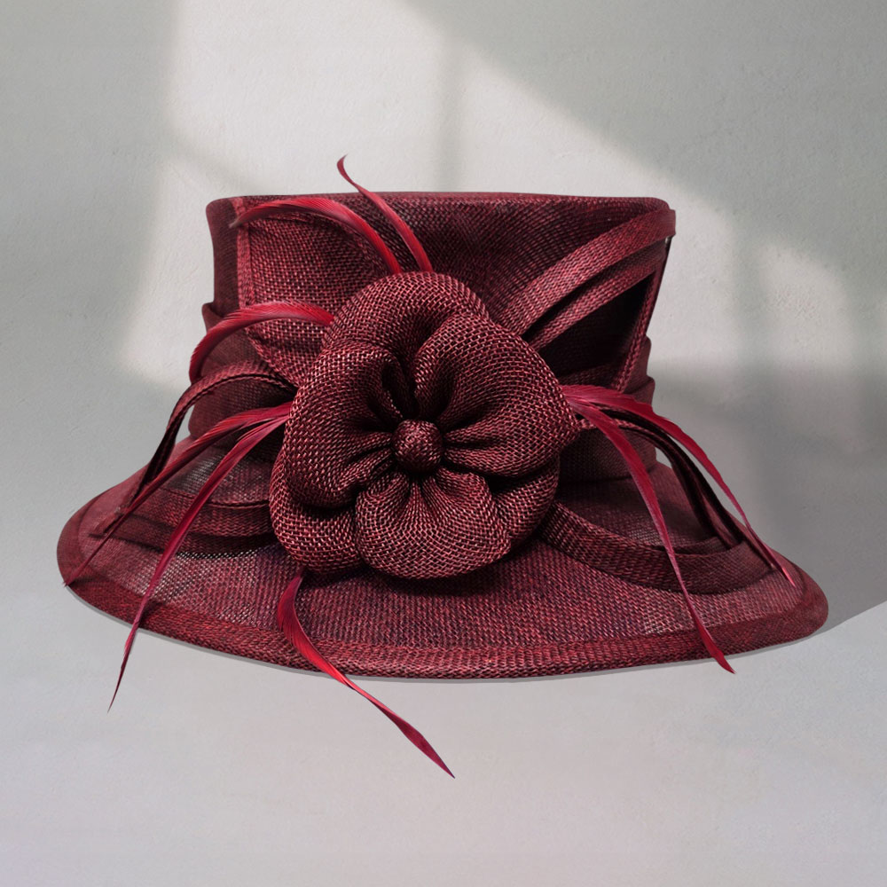 Flower Ribbon Feather Accented Sinamay Dressy Hat Flower Ribbon Feather Accented Sinamay Dressy Hat