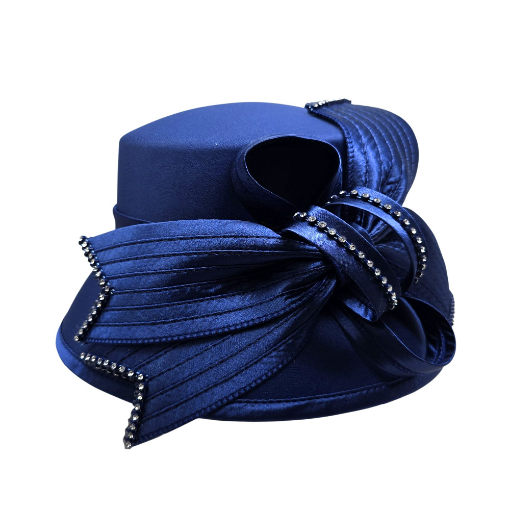 • Make a refined statement with this elegant formal hat, designed with a sculpted bow and sparkling rhinestone trim. Perfect for weddings, church services, and upscale occasions, this sophisticated accessory combines timeless style with graceful detailing.