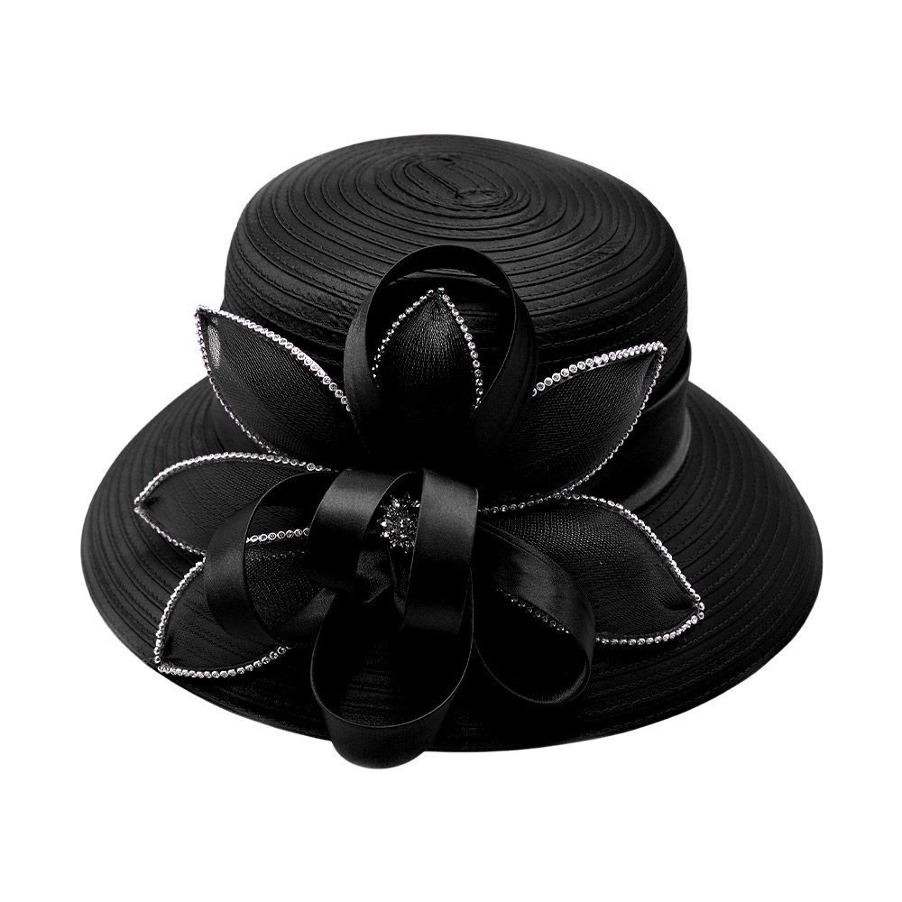 Rhinestone Rim Flower Bow Dressy Hat Rhinestone Rim Flower Bow Dressy Hat Rhinestone Rim Flower Bow Dressy Hat