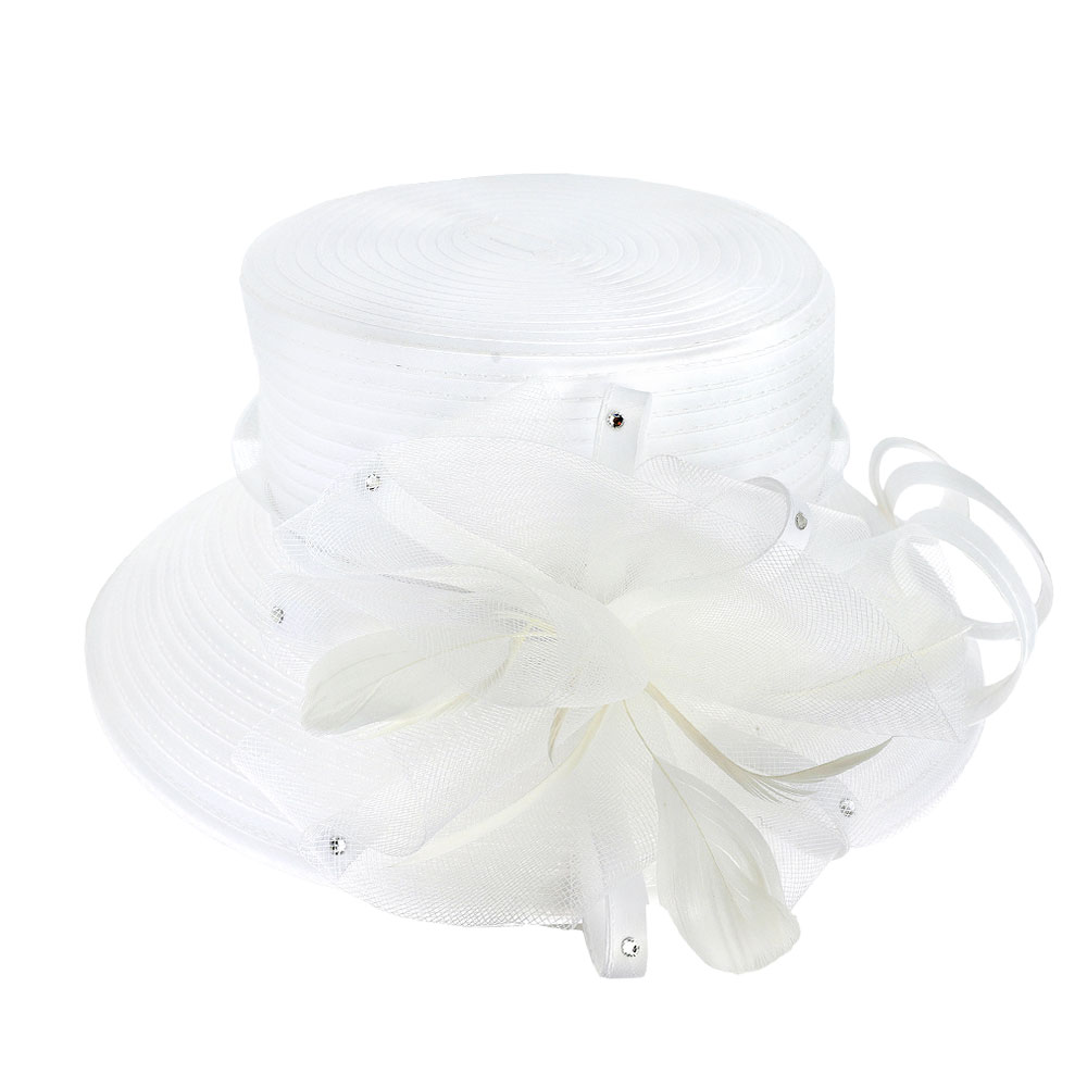 Stone Pointed Feather Mesh Bow Accented Dressy Hat