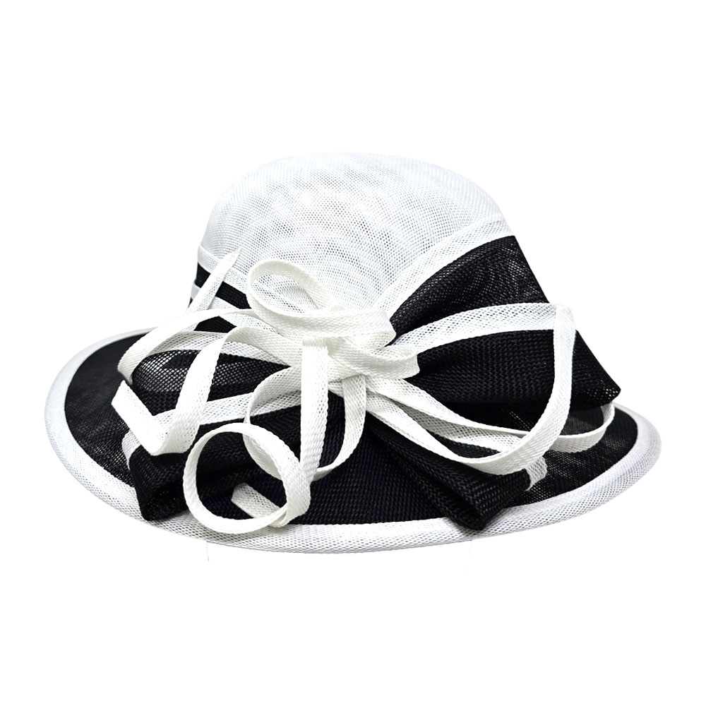 Two Tone Bow Accent Elegant Sinamay Dressy Hat
