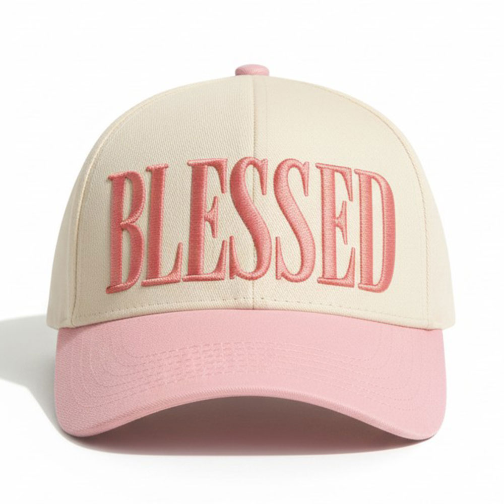 BLESSED Message Embroidered Five Panel Canvas Baseball Cap