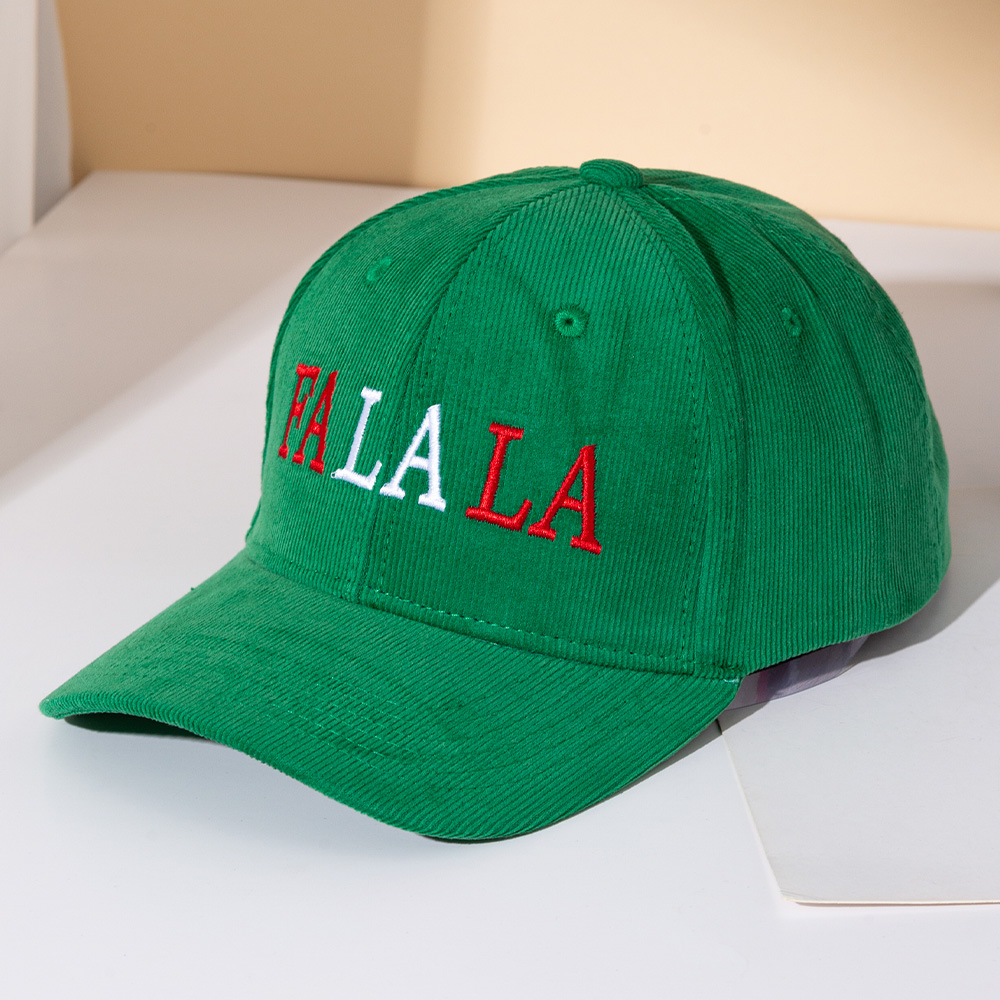 Details • Size : One Size Fits All - Adjustable Strap Makes Fit Comfortable • 5 Panel Canvas Cap : Adjustable Buckle Closure, Relaxed Fit and Pre-Curved Visor • This Corduroy K-Frame 5 Panel Hat is a must-have addition to any hat collection. Made with high-quality corduroy, this 5 panel hat has a sophisticated and stylish look. The sturdy material provides both durability and comfort, making it perfect for everyday wear. Upgrade your headwear game with this classic and versatile corduroy baseball hat. • Celebrate the season with this playful holiday cap featuring FA LA LA embroidered in festive colors. A fun Christmas accessory that adds cheer to any outfit, perfect for parties, gatherings, or gifting. Adjustable fit makes it a stylish novelty hat for spreading holiday spirit all season long.