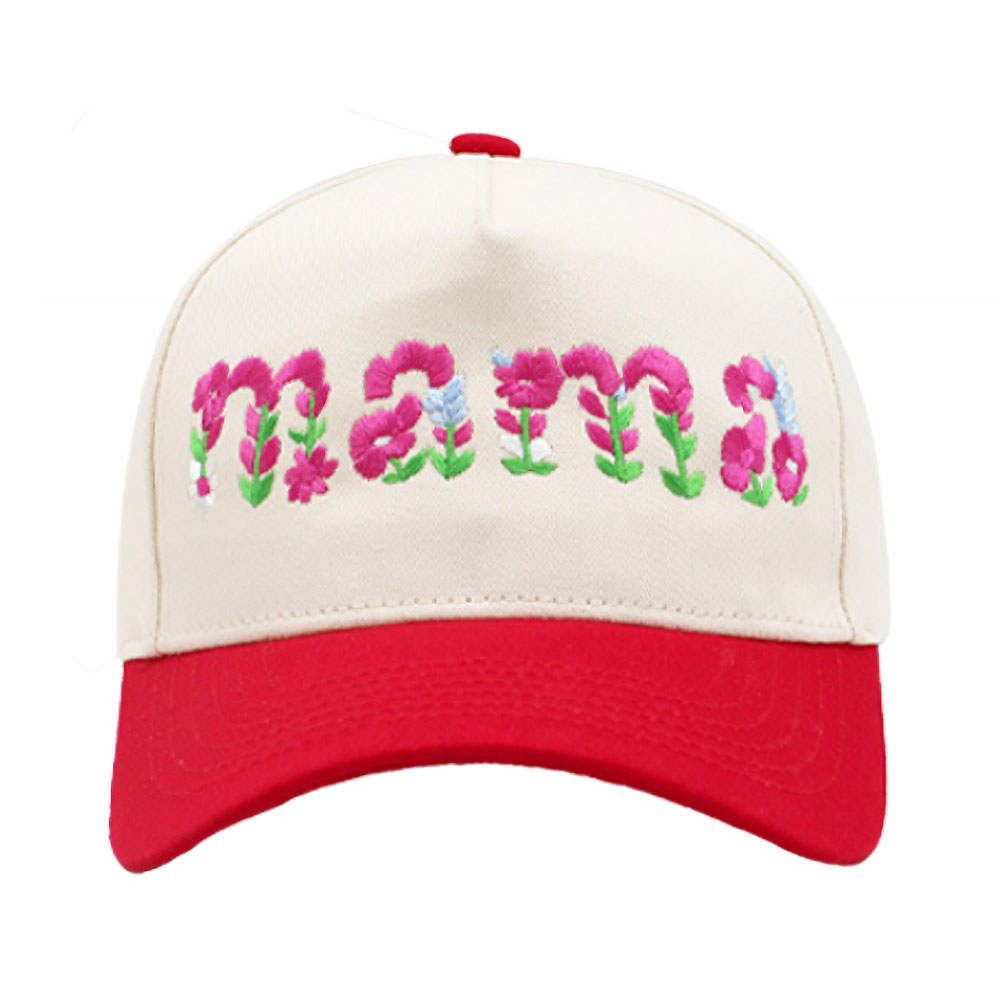 Floral MAMA Embroidered Five Panel Canvas Baseball Cap