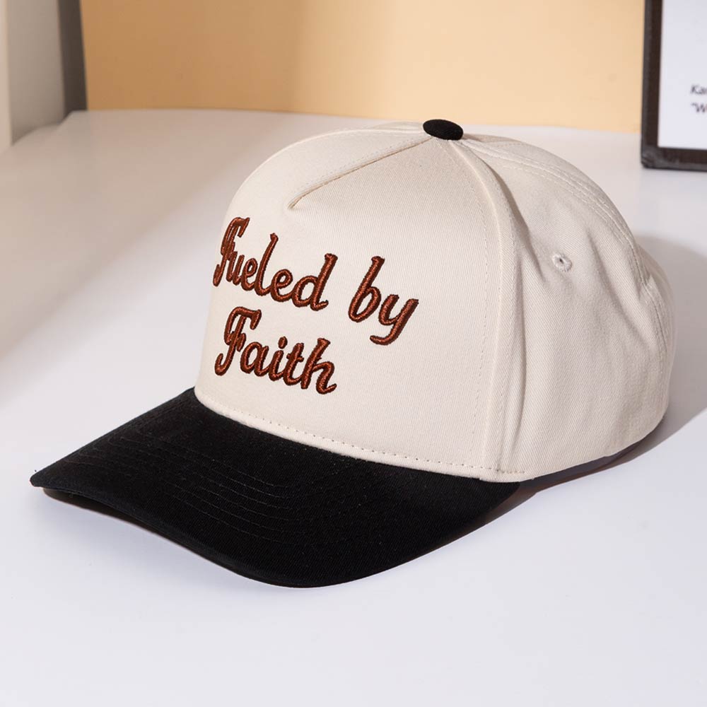 Details • Size : One Size • Motivational baseball cap featuring “Fueled by Faith” embroidered message for meaningful everyday wear. Designed for a comfortable fit and effortless styling with casual outfits. Perfect for daily errands, faith-based gatherings, travel, or gifting with an uplifting and confident statement.