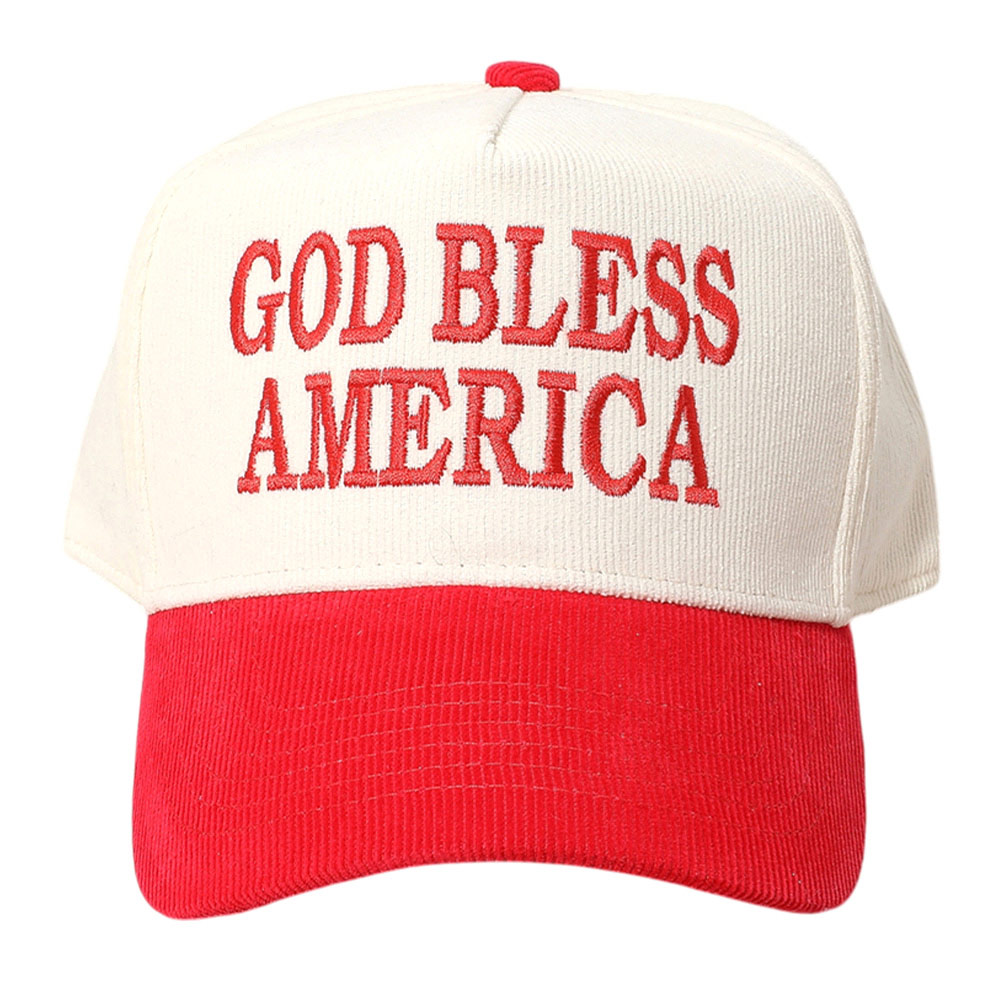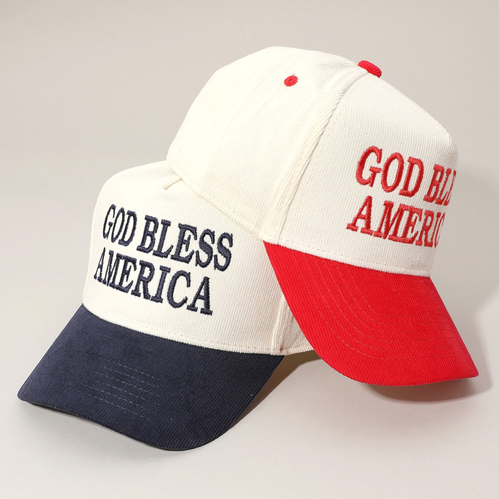 GOD BLESS AMERICA Message Embroidered Corduroy Baseball Cap