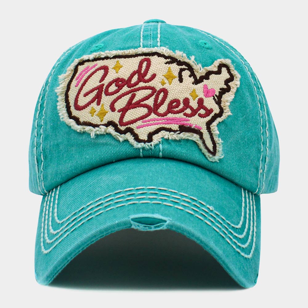 Details • Crown Circumference : 23" (Adjustable) • Crown Height : 4.25" • Brim Height : 2.75" • Material : 100% Cotton • Show your patriotic spirit with this stylish baseball cap featuring a distressed patch in the shape of the USA and embroidered “God Bless” lettering. A perfect blend of casual comfort and national pride, ideal for everyday wear or special occasions.