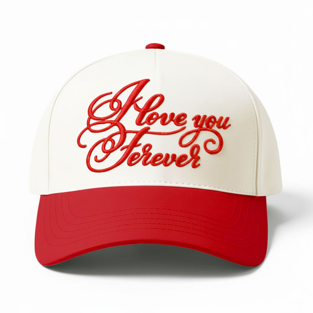 • Show your love in style with this “I Love You Forever” baseball cap featuring elegant embroidered lettering that makes a bold, heartfelt statement. Perfect for everyday wear, gifting, or showing affection on special occasions. A meaningful and stylish accessory that adds personality to casual looks while celebrating love in a unique and expressive way.