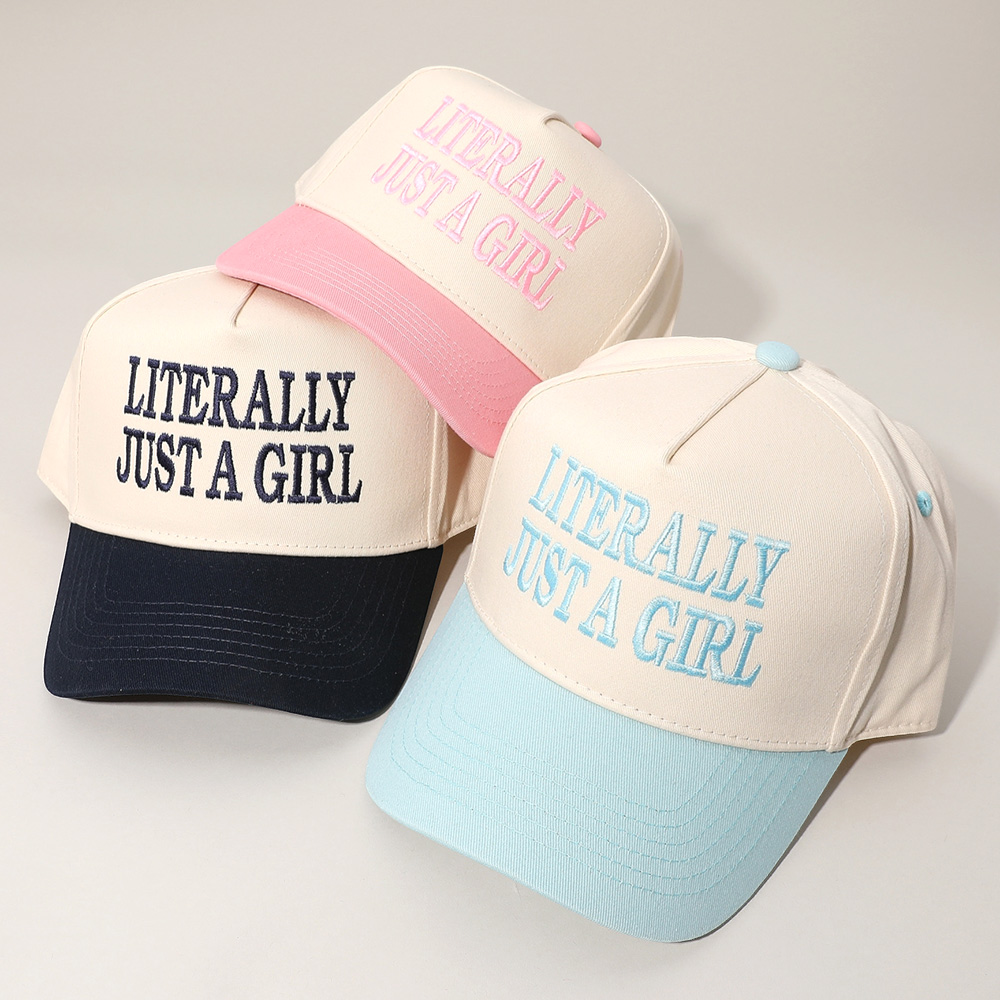 LITERALLY JUST A GIRL Message Embroidered Baseball Cap