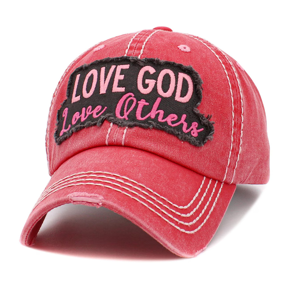 • Show faith and kindness with this distressed baseball cap featuring the inspirational phrase “Love God Love Others.” Stylish with contrast stitching and a comfortable fit, it’s the perfect everyday accessory to spread positivity and encouragement.