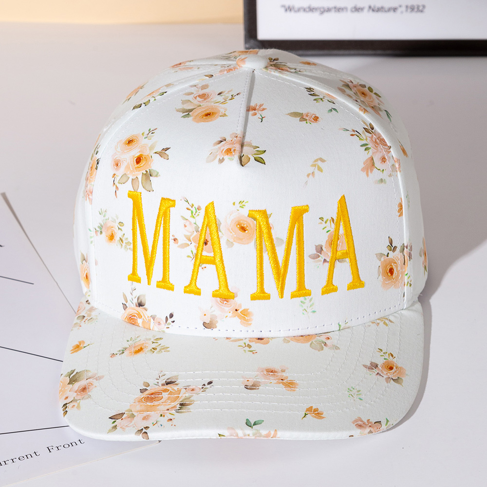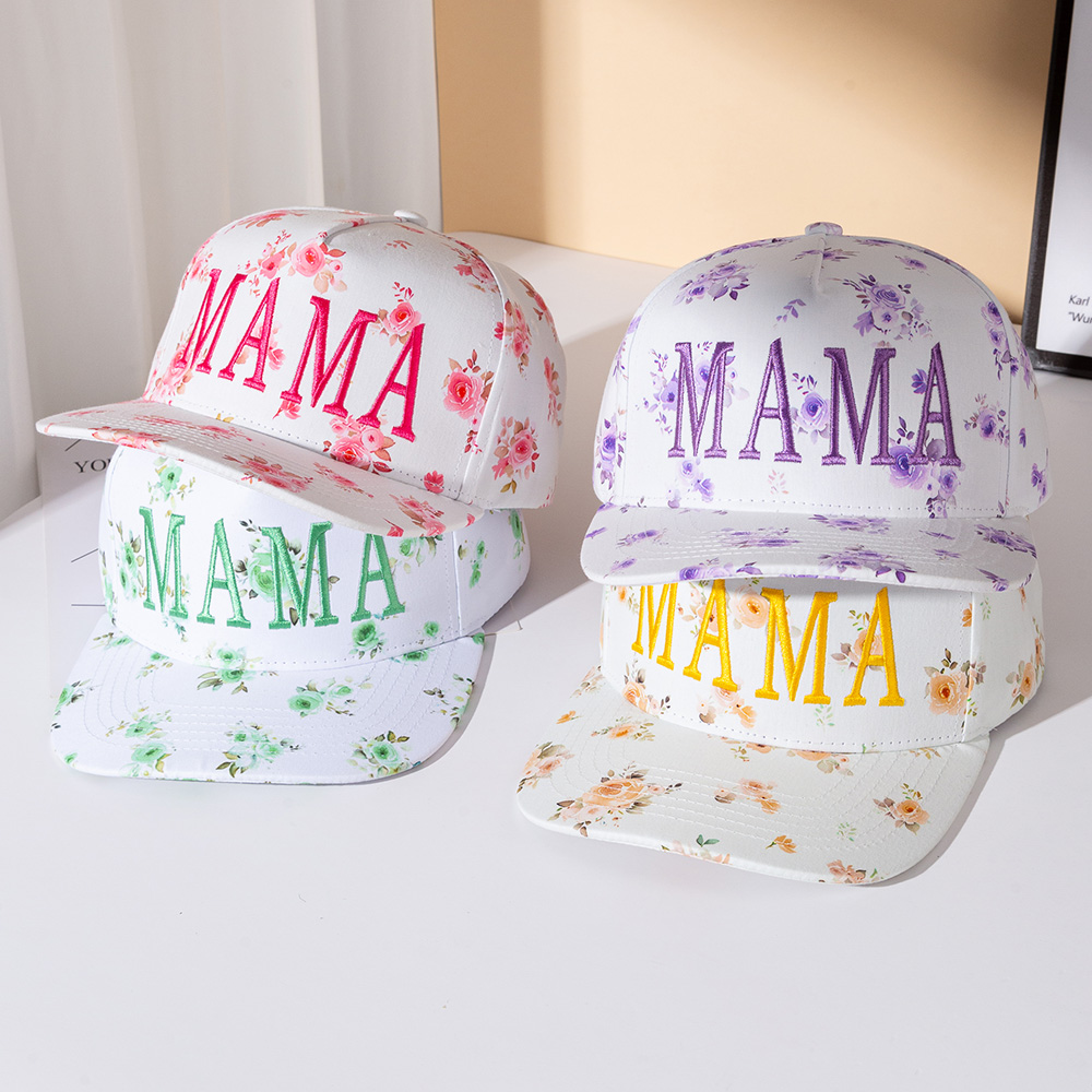 • Celebrate motherhood in style with this “Mama” floral embroidered baseball cap. Designed with a charming all-over print, it’s a perfect blend of fashion and function, ideal for casual wear, outdoor activities, or gifting to a proud mom who loves chic accessories.