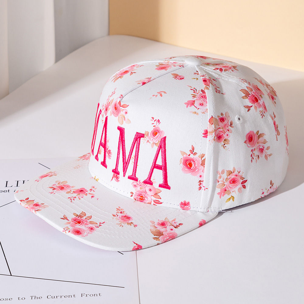 MAMA Floral Embroidered Five Panel Canvas Snapback Baseball Cap
