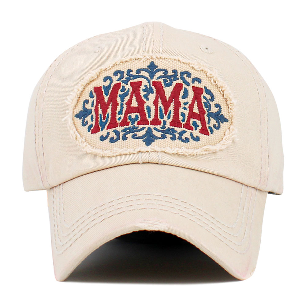 Floral MAMA Embroidered Five Panel Canvas Baseball Cap