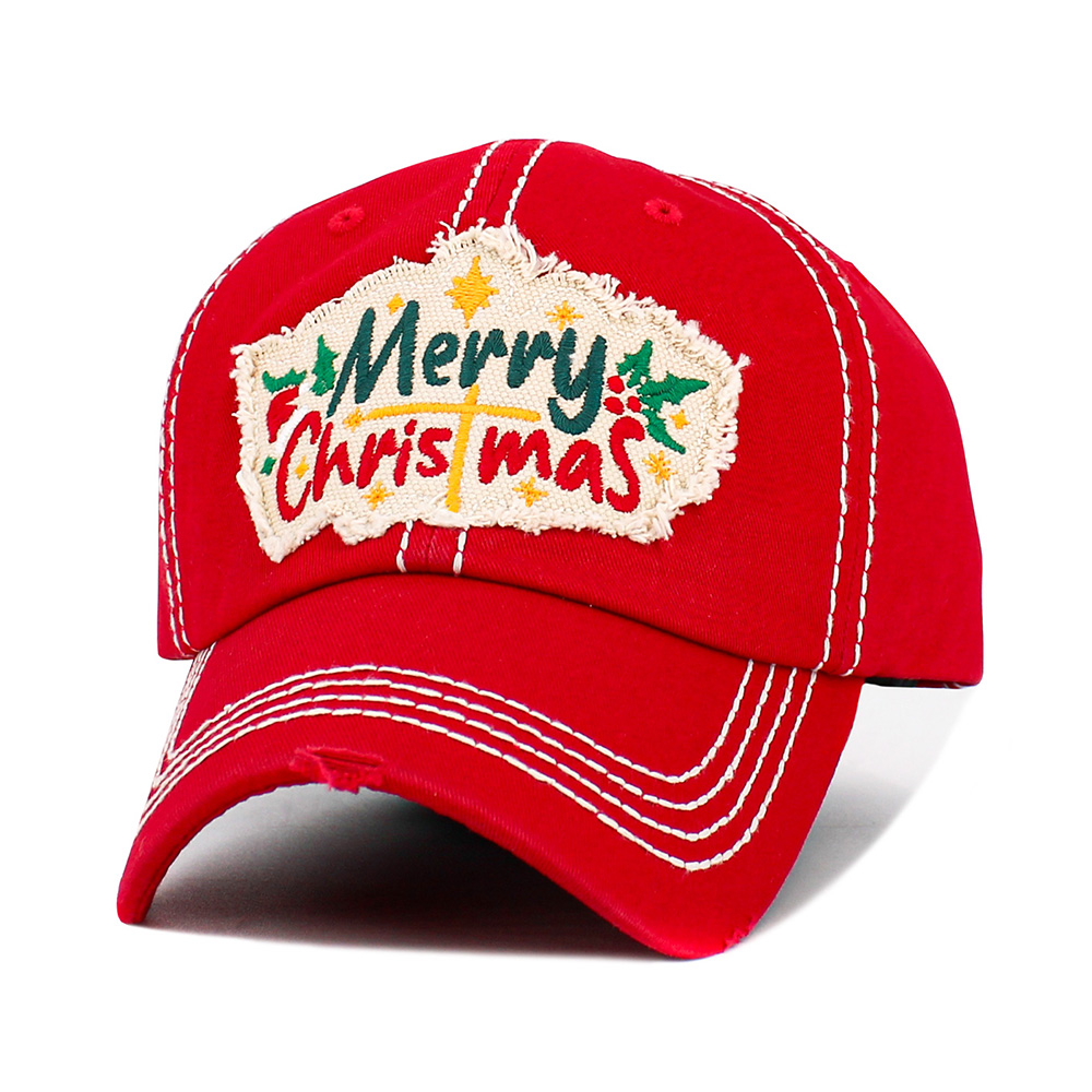 • Festive baseball cap featuring a bright “Merry Christmas” embroidered patch with a distressed edge for a cheerful holiday look. Ideal for casual wear or seasonal gatherings, this adjustable cap adds a fun and spirited touch to your winter wardrobe and festive celebrations.