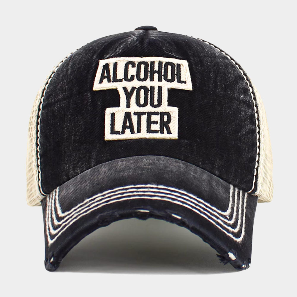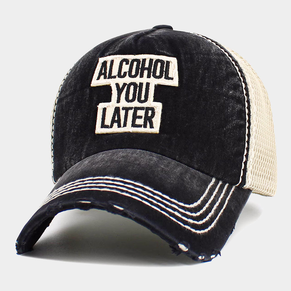 Mesh Back ALCOHOL YOU LATER Message Patch Vintage Baseball Cap