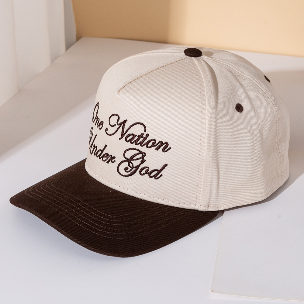 ONE NATION UNDER GOD Message Embroidered Five Panel Canvas Snapback Baseball Cap