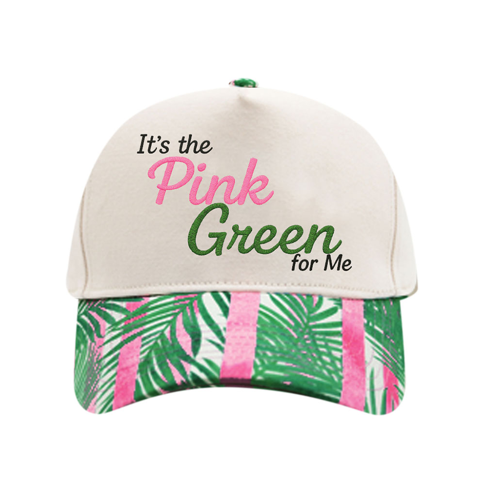 PINK GREEN Message Embroidered Palm Tree Pattern Printed Brim Baseball Cap