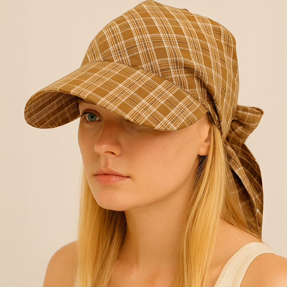 Plaid Bow Back Scarf Baseball Cap Plaid Bow Back Scarf Baseball Cap
