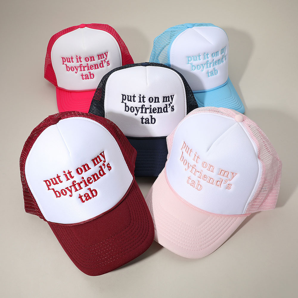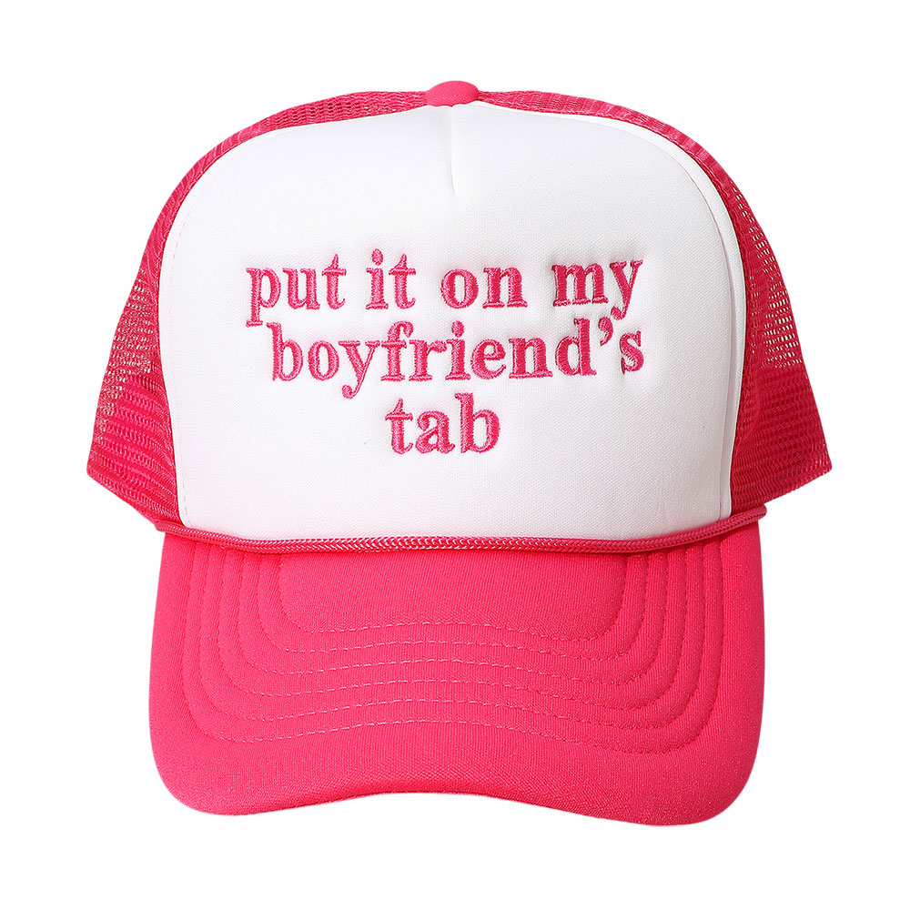 PUT IT ON MY BOYFRIENDS TAB Embroidered Mesh Back Trucker Cap