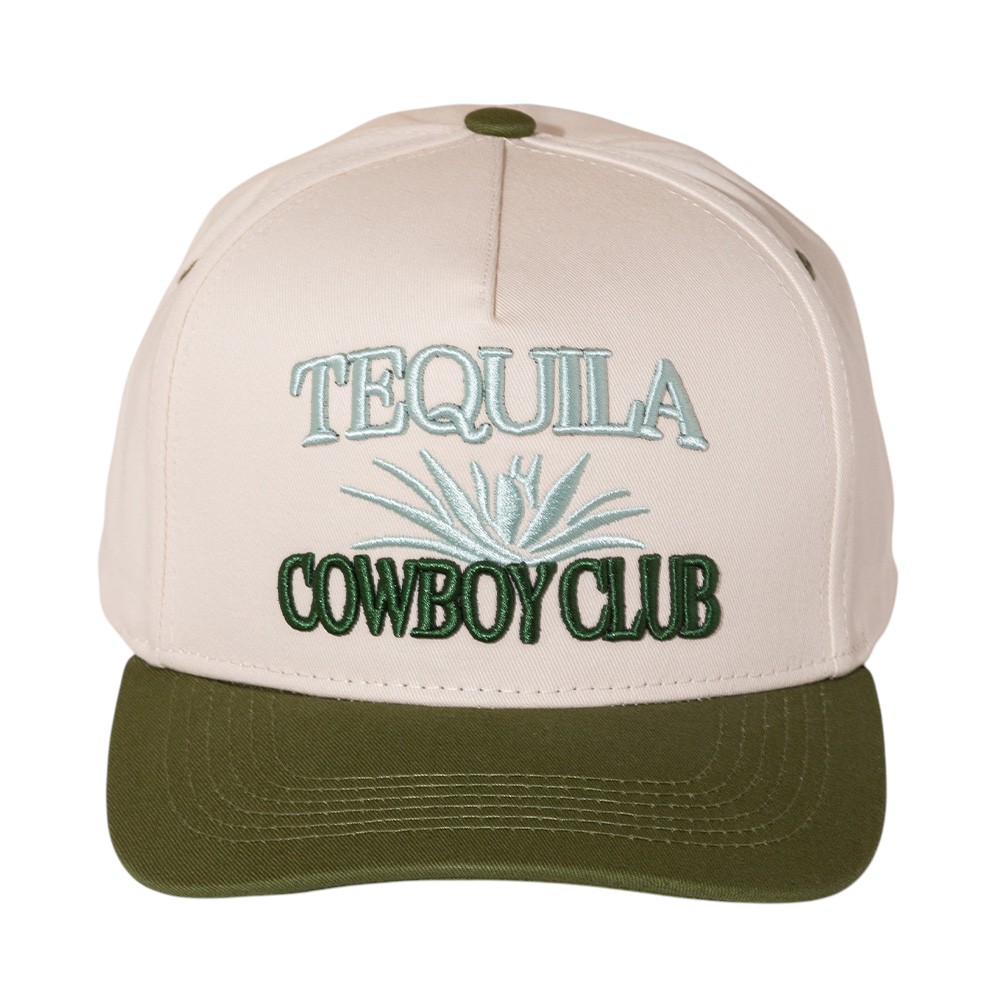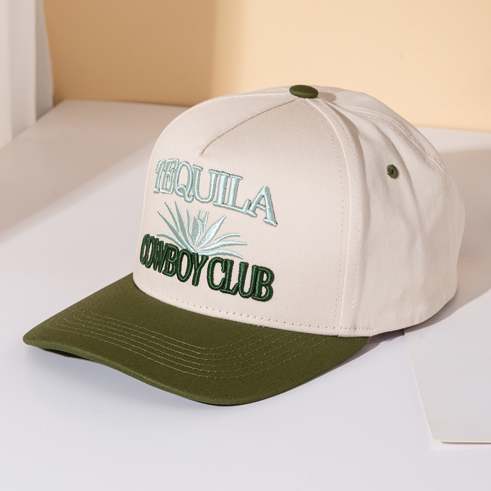 TEQUILA COWBOY Message Embroidered Five Panel Canvas Snapback Baseball Cap
