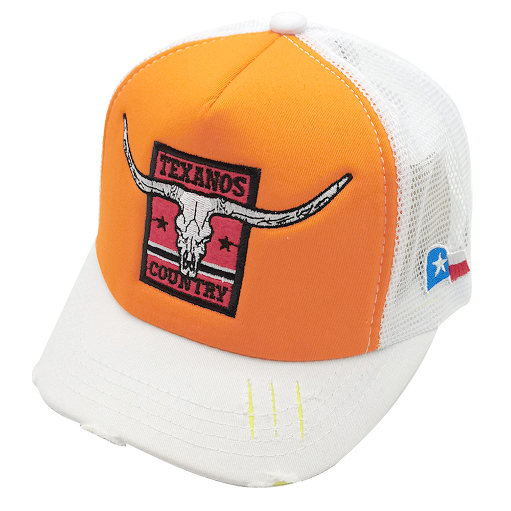 TEXANOS COUNTRY Message Texas Steer Head Embroidered Mesh Back Trucker Hat