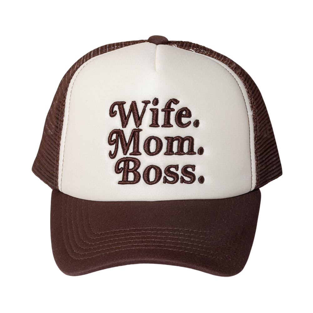 WIFE MOM BOSS Message Embroidered Trucker Hat