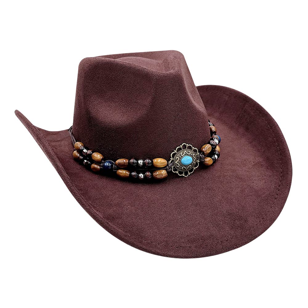 • This western-inspired cowboy hat features a classic structured silhouette accented with a decorative beaded band and centerpiece detail. Designed for statement styling, it offers a bold yet wearable look for festivals, concerts, travel, and themed events. A standout accessory for boutiques seeking eye-catching headwear with rustic character and everyday appeal.