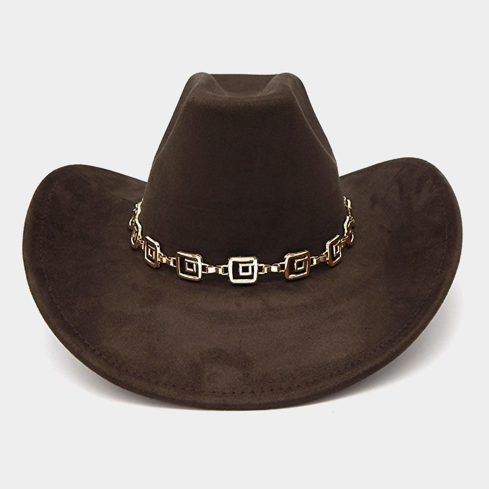 Geometric Metal Chain Accent Western Cowboy Fedora Hat
