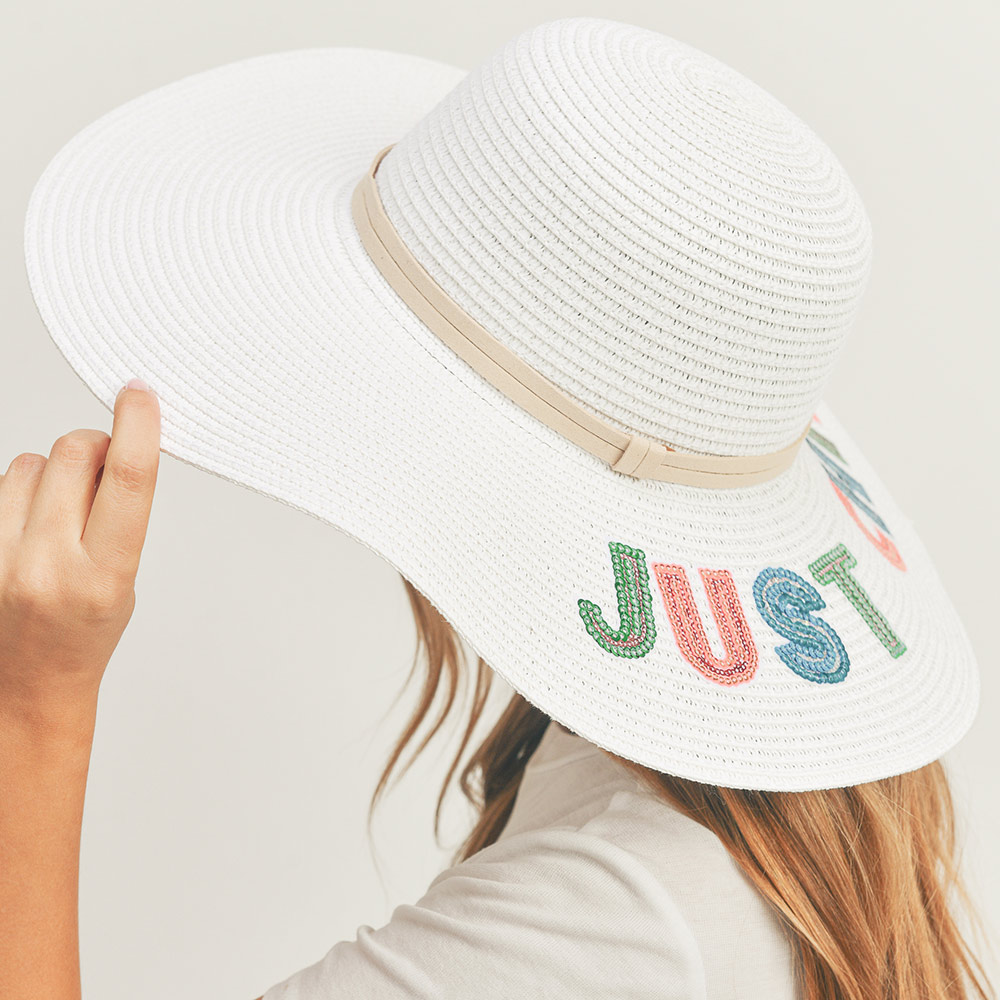 Just Chill Out Sequin Message Straw Panama Sun Hat