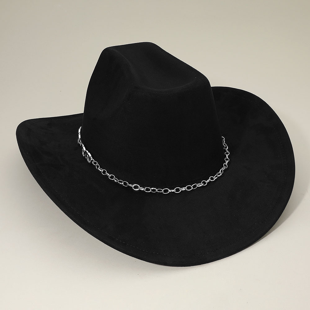 • Refine your style with this bold Western-inspired hat featuring a striking curved brim and an elegant chain detail that adds a luxe touch. Designed to elevate festival looks, evening outfits, or everyday flair, it delivers a standout silhouette that blends classic attitude with modern sophistication.
