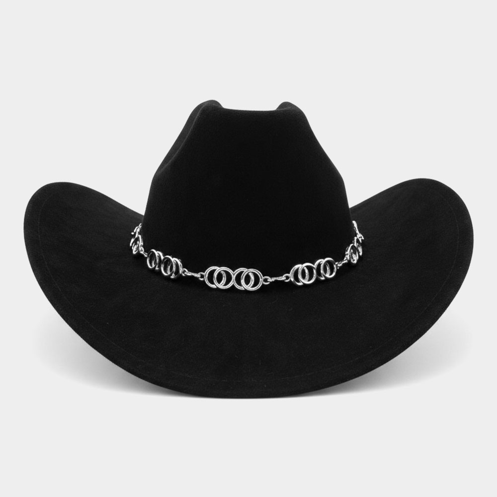 Polished Metal Chain Accent Sculpted Western Cowboy Fedora Hat