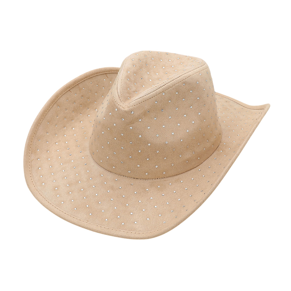Rhinestone Embellished Faux Suede Western Cowboy Fedora Hat