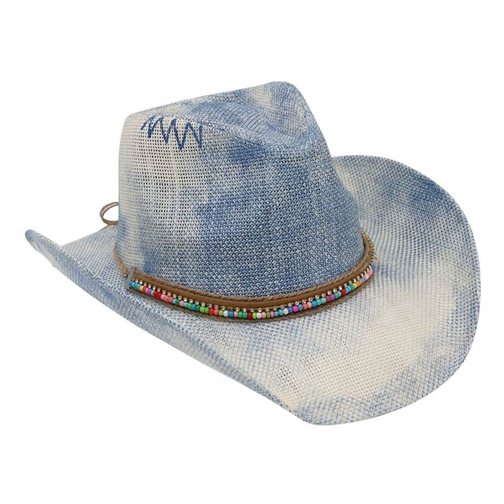 • Statement western cowboy hat designed with a structured crown and curved brim, accented by a decorative beaded band for a bold, eye-catching finish. Ideal for festivals, concerts, travel, and everyday styling, this versatile hat adds personality, comfort, and western flair to any outfit.