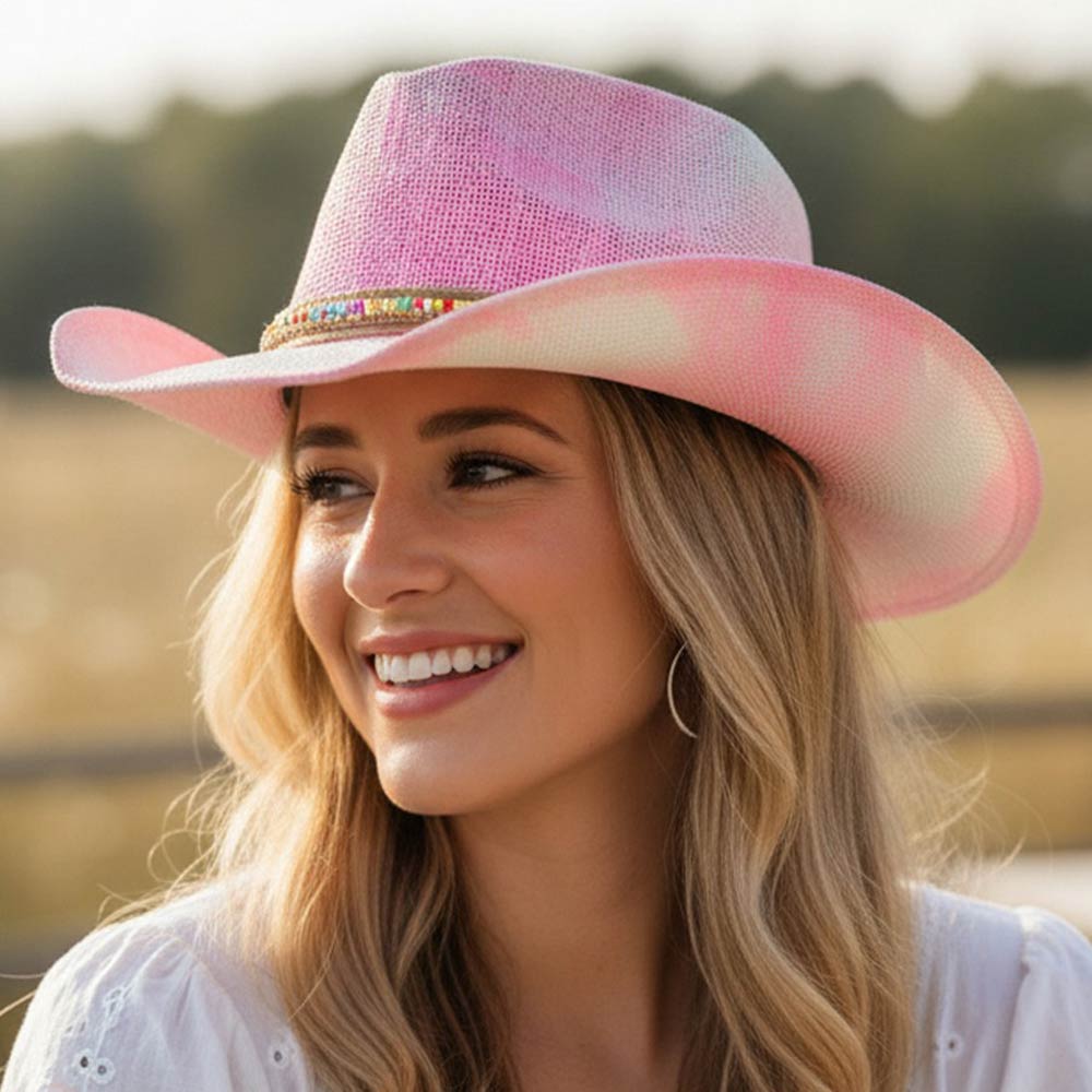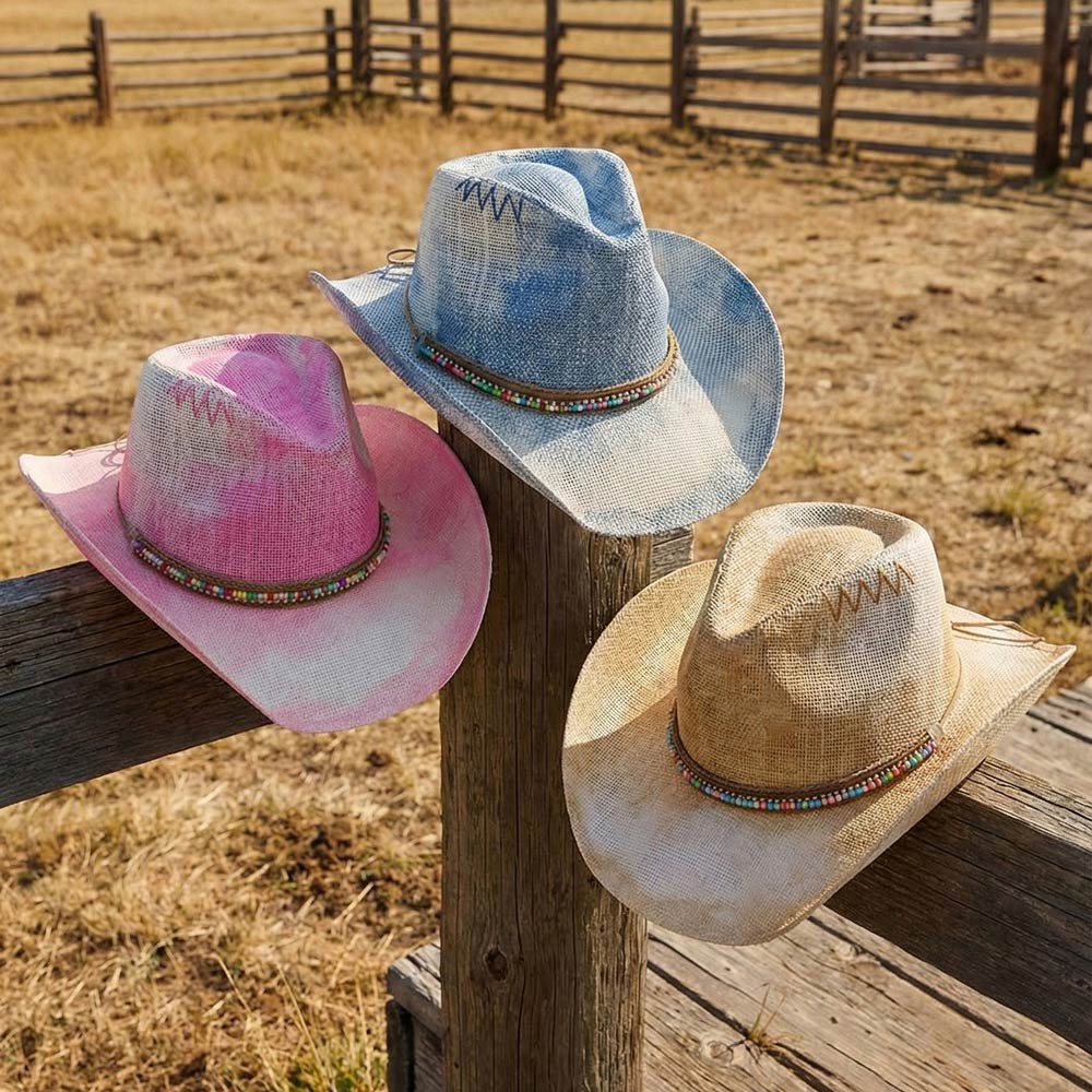 Details • Size : One Size • Material : 100% Paper • Statement western cowboy hat designed with a structured crown and curved brim, accented by a decorative beaded band for a bold, eye-catching finish. Ideal for festivals, concerts, travel, and everyday styling, this versatile hat adds personality, comfort, and western flair to any outfit.