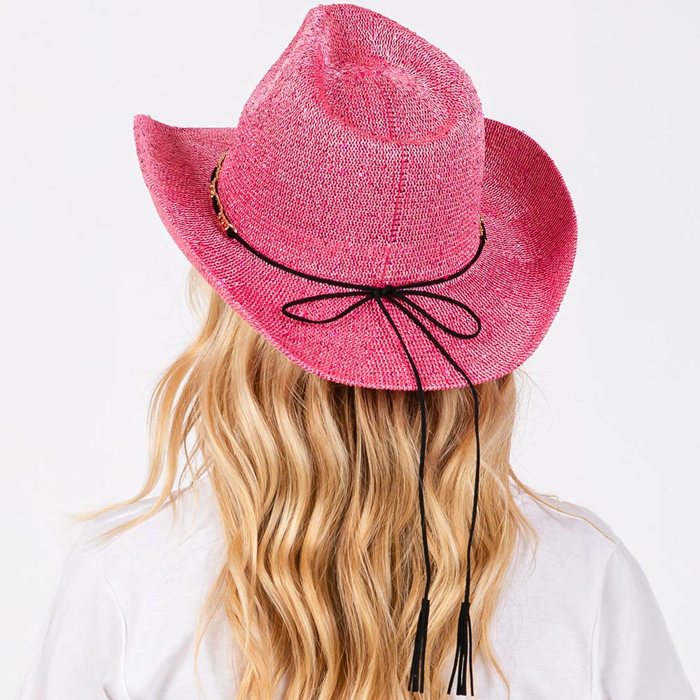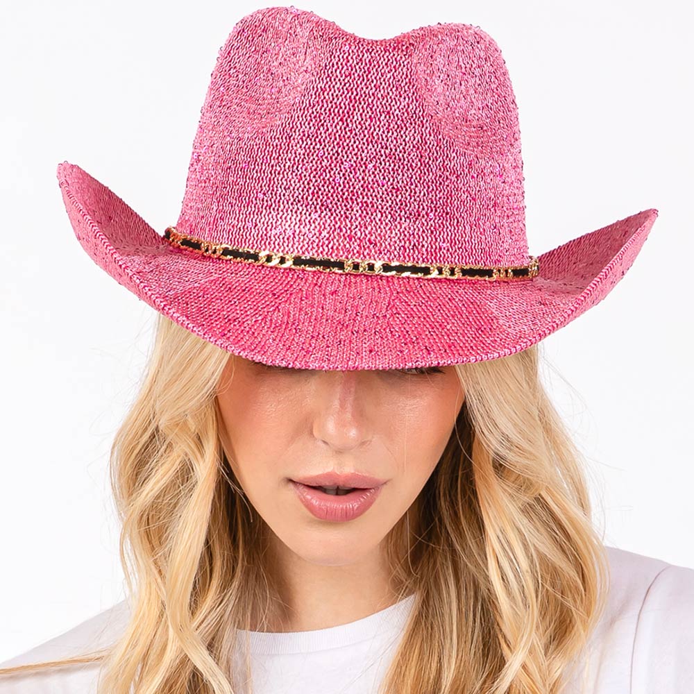 Sequin Cowboy Hat with Metal Chain Suede String Band