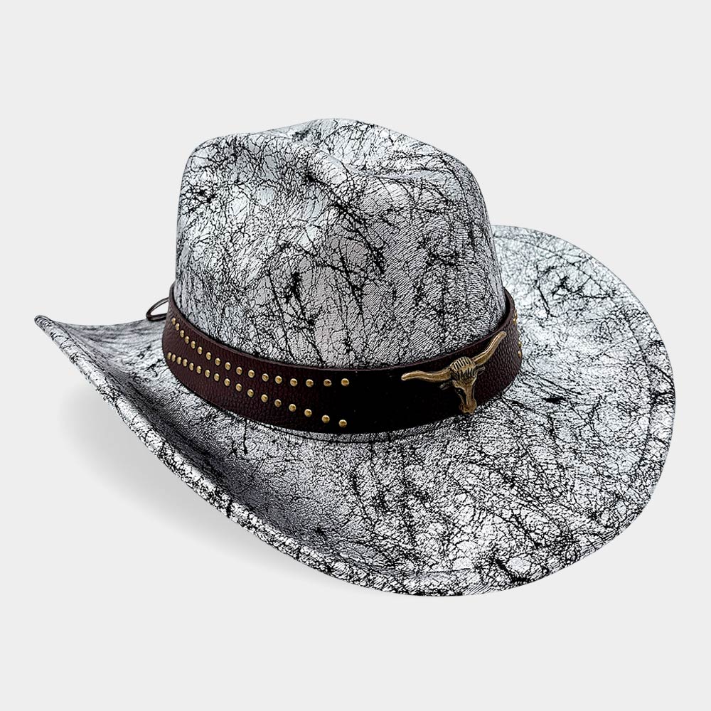 Steer Head Accent Studded Faux Leather Band Western Cowboy Hat