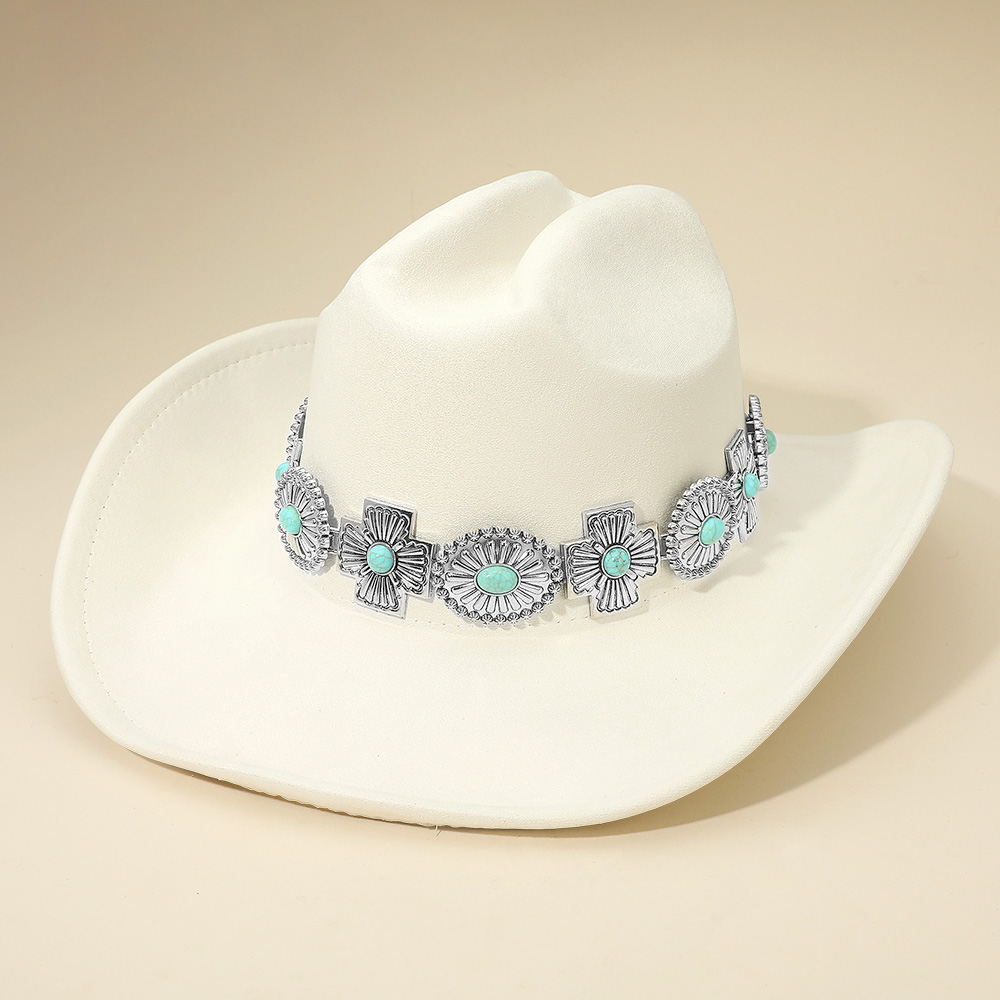• Classic western cowboy hat designed with a detailed concho band that adds bold character and unique flair. Perfect for festivals, rodeos, or casual style, this hat blends timeless tradition with standout fashion appeal, making it a versatile accessory for any western-inspired look.