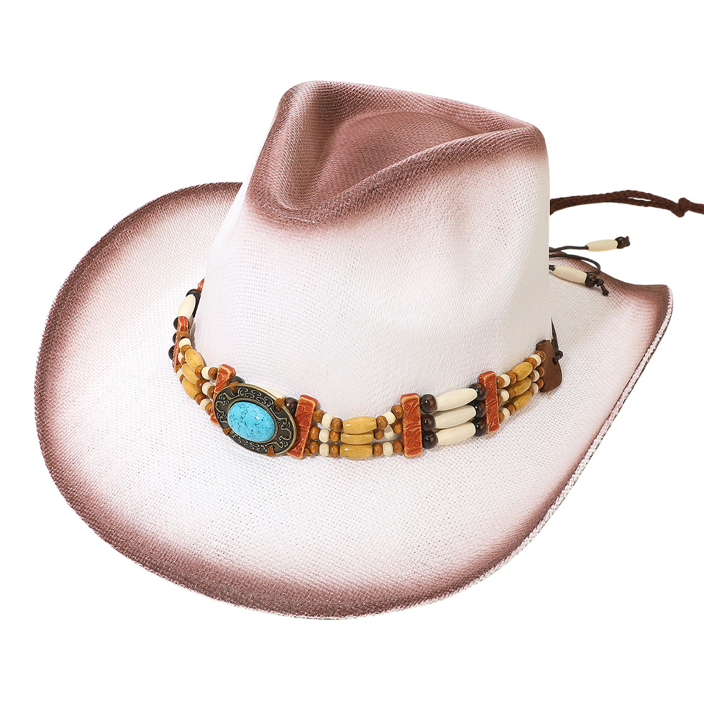 Western Oval Turquoise Concho Buckle Wooden Beaded Band Cowboy Fedora Hat