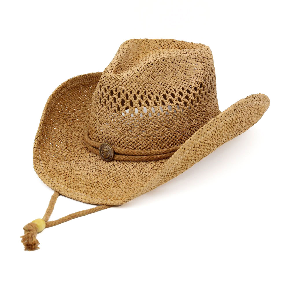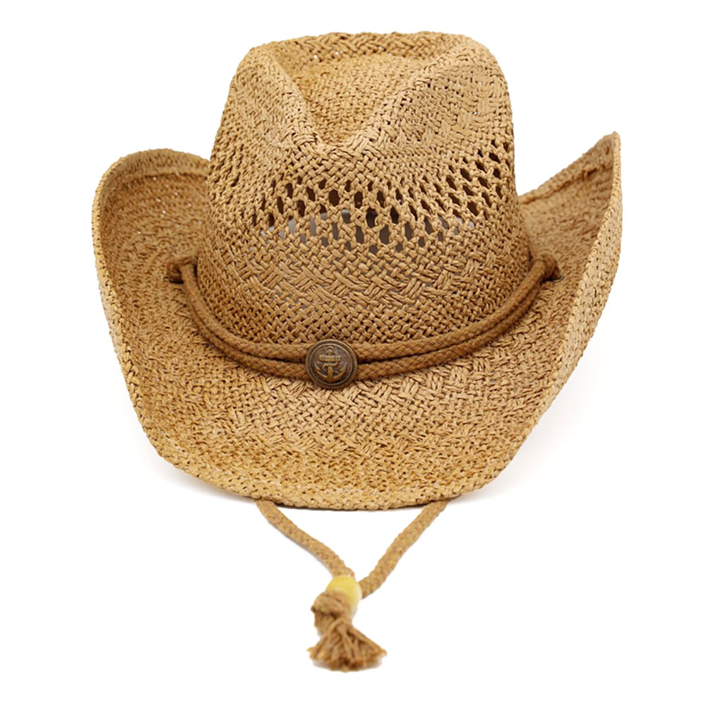 Antique Anchor Button Adjustable Chin Strap Summer Western Straw Cowboy Hat