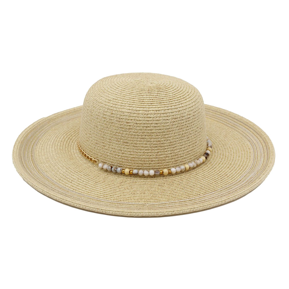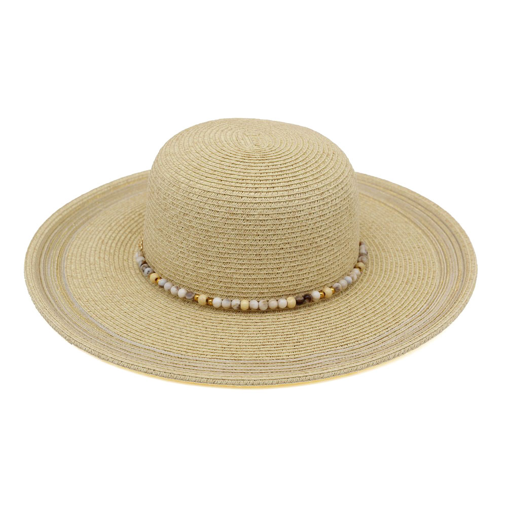 Beaded Band Shimmer Straw Wide Brim Summer Sun Hat