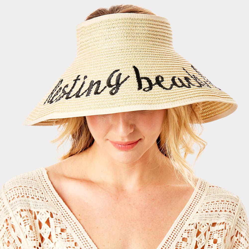 Resting beach face Message Roll Up Foldable Visor Sun Hat