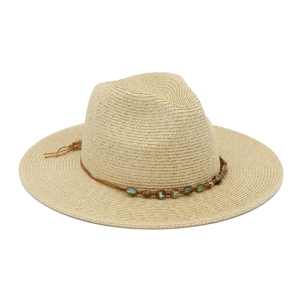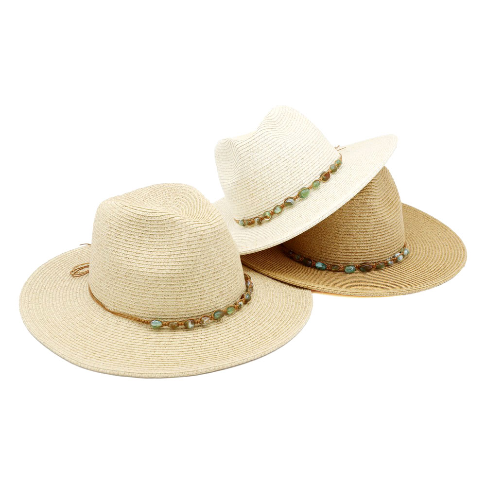 • This wide brim fedora sun hat features a structured crown accented with a decorative beaded band for added texture and style. Designed for everyday wear, travel, and resort looks, it pairs effortlessly with casual and elevated outfits. A versatile statement accessory that brings a polished finish to seasonal collections and boutique assortments while offering strong visual appeal for merchandising.