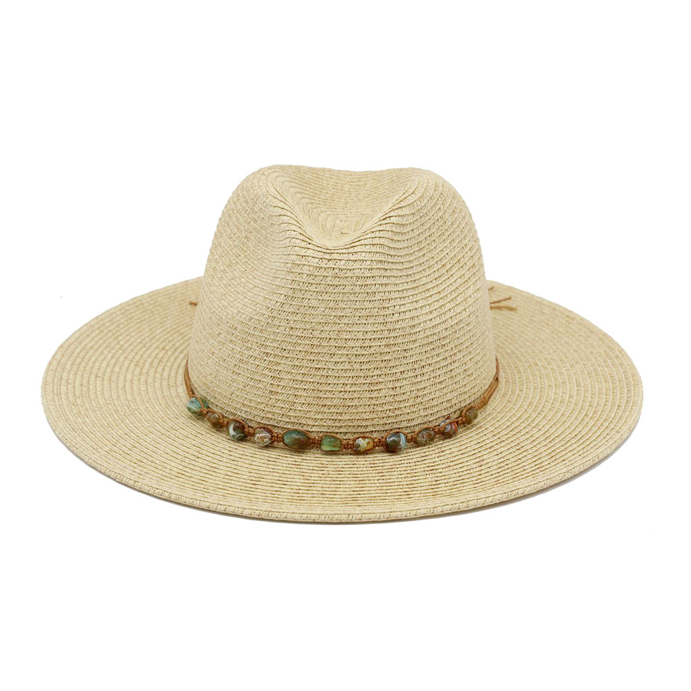 Turquoise Stone Band Straw Summer Fedora Hat