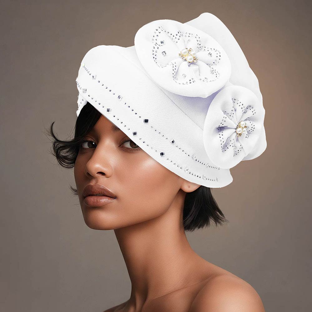 Details • Size : One Size • Material : 100% Polyester • Elegant turban-style hat featuring sculpted floral accents and refined embellishment details for a polished statement look. Designed to elevate formal outfits, event styling, and boutique collections, this fashion-forward headwear adds structure, dimension, and standout appeal to dressy and occasion-ready ensembles.