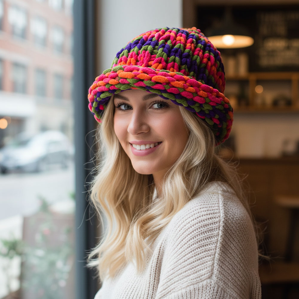 Details • Size : One Size (11" L) • Material : 100% Polyester • Soft chunky knit winter hat featuring a thick textured pattern and relaxed fit for all-day comfort. Perfect for adding warmth and a stylish accent to any casual or outdoor winter outfit while keeping you snug during chilly days.