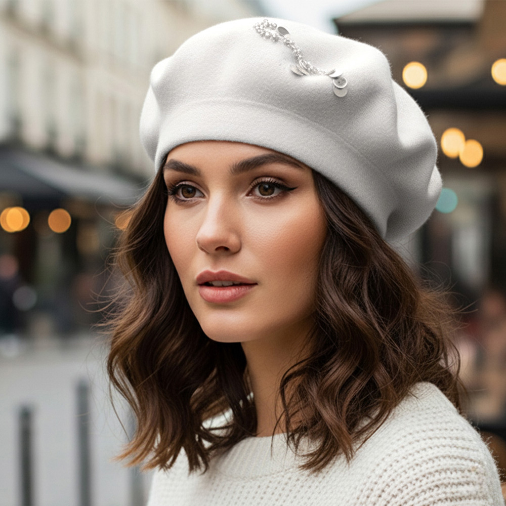 • Chic beret featuring a subtle decorative accent, perfect for adding a touch of Parisian flair to everyday outfits. Stylish and versatile, this accessory elevates casual and dressy looks with timeless charm and effortless elegance.