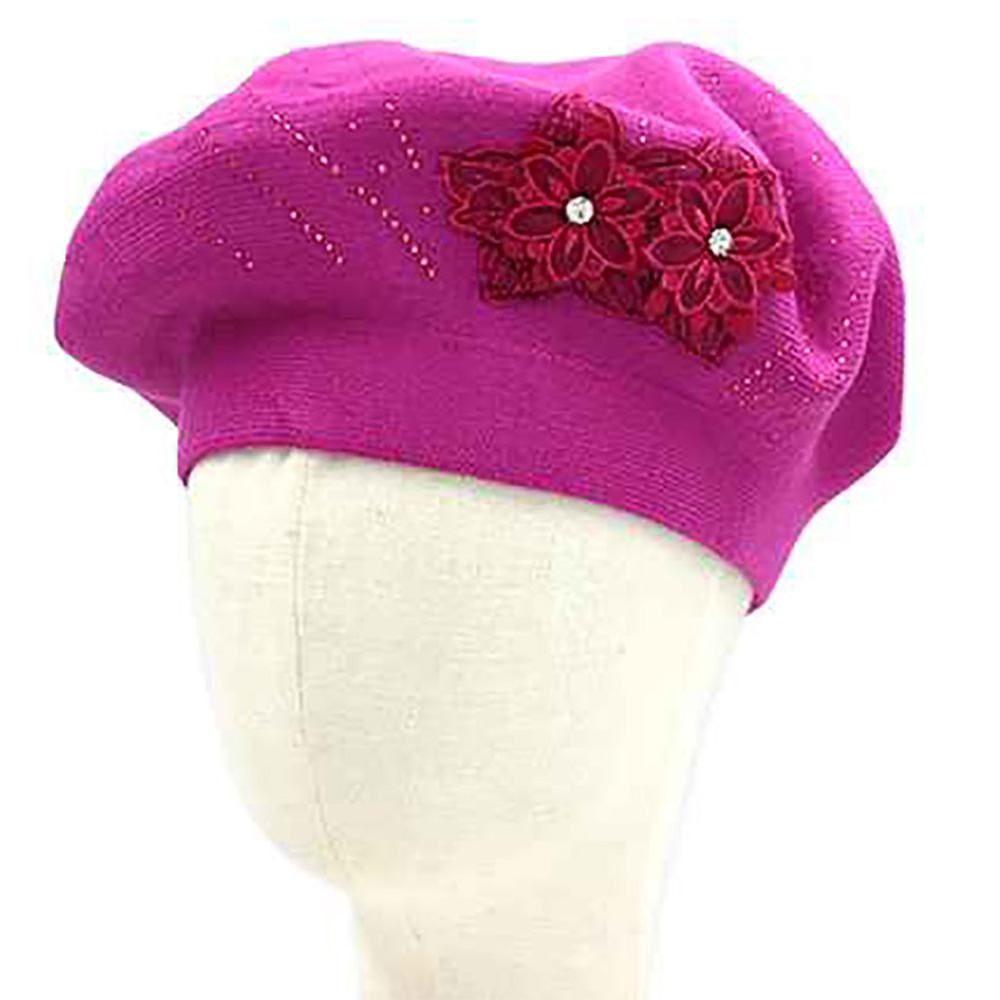 Floral Applique Accent Winter Beret Hat Floral Applique Accent Winter Beret Hat Floral Applique Accent Winter Beret Hat